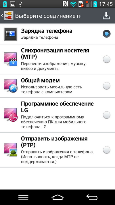 Настройки, появляющиеся при подключении смартфона к компьютеру. Программное обеспечение для ПК смартфон устанавливает сам.