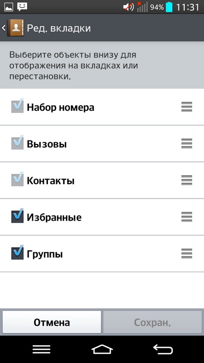 Вкладки телефонного приложения можно редактировать и менять местами.