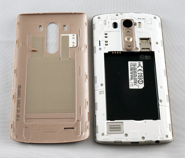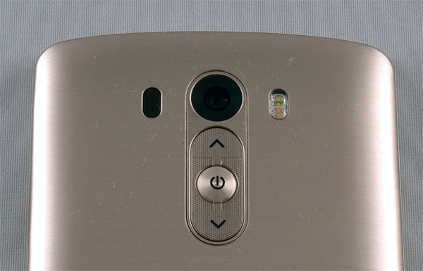 Задняя часть смотрится очень эффектно - крышка под металл (пластик с вплавленной в поверхность метализированной текстурой), - ну и обращает на себя внимание новый дизайн знаменитой "кнопки G" и двух клавиш громкости.