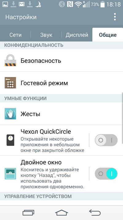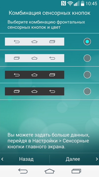 Также G3 сразу предлагает выбрать цвет и набор экранных кнопок. (Что мне в LG очень и очень нравится.) Причем тут можно ставить до пяти экранных кнопок, где также доступны для включения уведомления, быстрые заметки, мини-приложения и двойные окна.