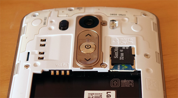 Сим-карта и карта памяти располагаются в слотах друг над другом - экономия места. Точно так же сделано и в Samsung Galaxy S5.