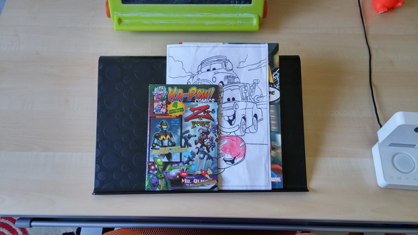 Отличное решение. Намного удобнее читать со включенными наушниками при таком расположении.