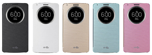 Так же как и для LG G2, для этого смартфона продается хитрый чехол QuickCircle соответствующего цвета, который в закрытом виде в круглом окне может показывать специальные приложения.