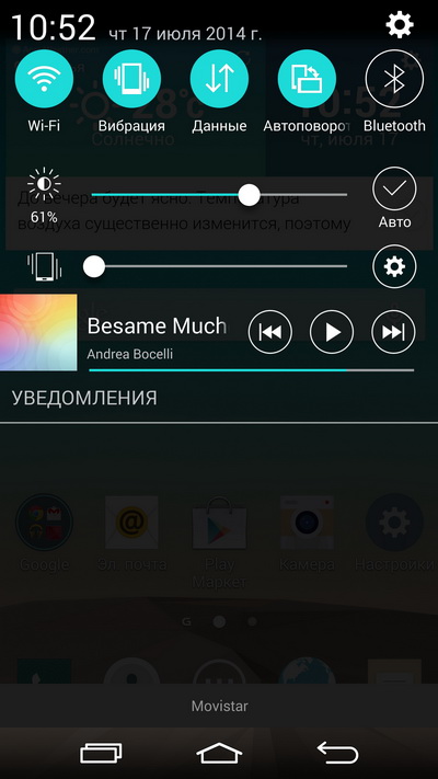 Работа автоматической подстройки яркости мне не понравилась: она явно занижала яркость, причем даже при выставлении параметра на 100%. У Galaxy S5 автоматическая подстройка работает явно лучше.