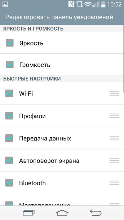Набор и порядок пиктограмм быстрых настроек, конечно, редактируется.