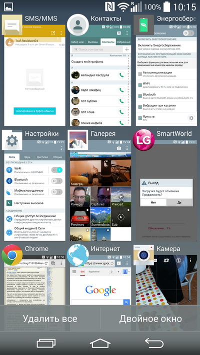 При нажатии на кнопку "Двойное окно" можно выбрать два приложения, которые одновременно будут находиться на экране.
