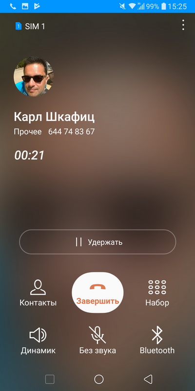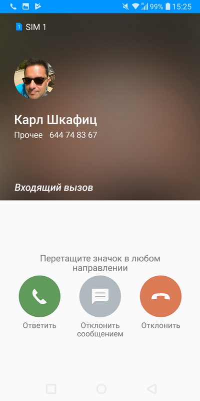 Входящий звонок - картинка контакта показывается небольшим кружком.