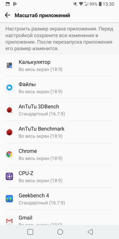 В настройках главного экрана можно менять масштаб приложений - то есть разрешать им или не разрешать разворачиваться на весь экран 18:9. Кстати, у Mate 10 Pro это сделано значительно неудобнее: там при запуске приложения снизу на экране появляется вопрос о переводе в полноэкранный режим. Здесь такого нет.