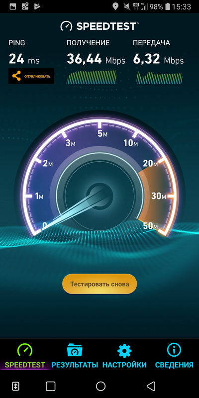 Скорость Wi-Fi и мобильного Интернета - практически максимальная для условий тестирования.