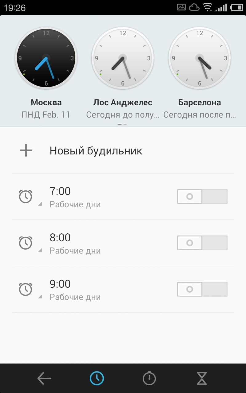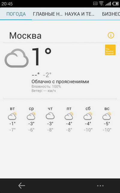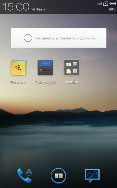 Кстати, на первом скриншоте сразу обратите внимание на то, что текущее время располагается не на одной строке, а на двух. Это намного удобнее, потому что время хорошо различимо, поэтому не надо ставить дополнительные виджеты с часами. Также на второй строке выводятся день недели, месяц и год, а справа - проценты разрядки аккумулятора. (Насколько я помню, Android до сих пор не умеет показывать проценты разрядки: в тех же телефонах Samsung подобную опцию можно включить, но она их собственной разработки.)