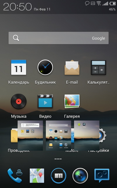 Серьезное отличие десктопа Flyme от десктопа Android заключается в том, что тут как класса нет окна со всеми установленными приложениями. Во Flyme исповедуют принцип, примененный в iOS: все приложения системы установлены на десктопах.