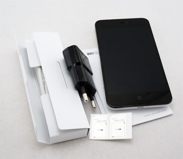 Комплектация: смартфон, кабель USB-microUSB, адаптер питания, шаблон обрезки miniSIM в microSIM, адаптер microSIM, "ключ" для открывания задней крышки (нечто вроде эпловской скрепки для слота SIM-карты), брошюрки.