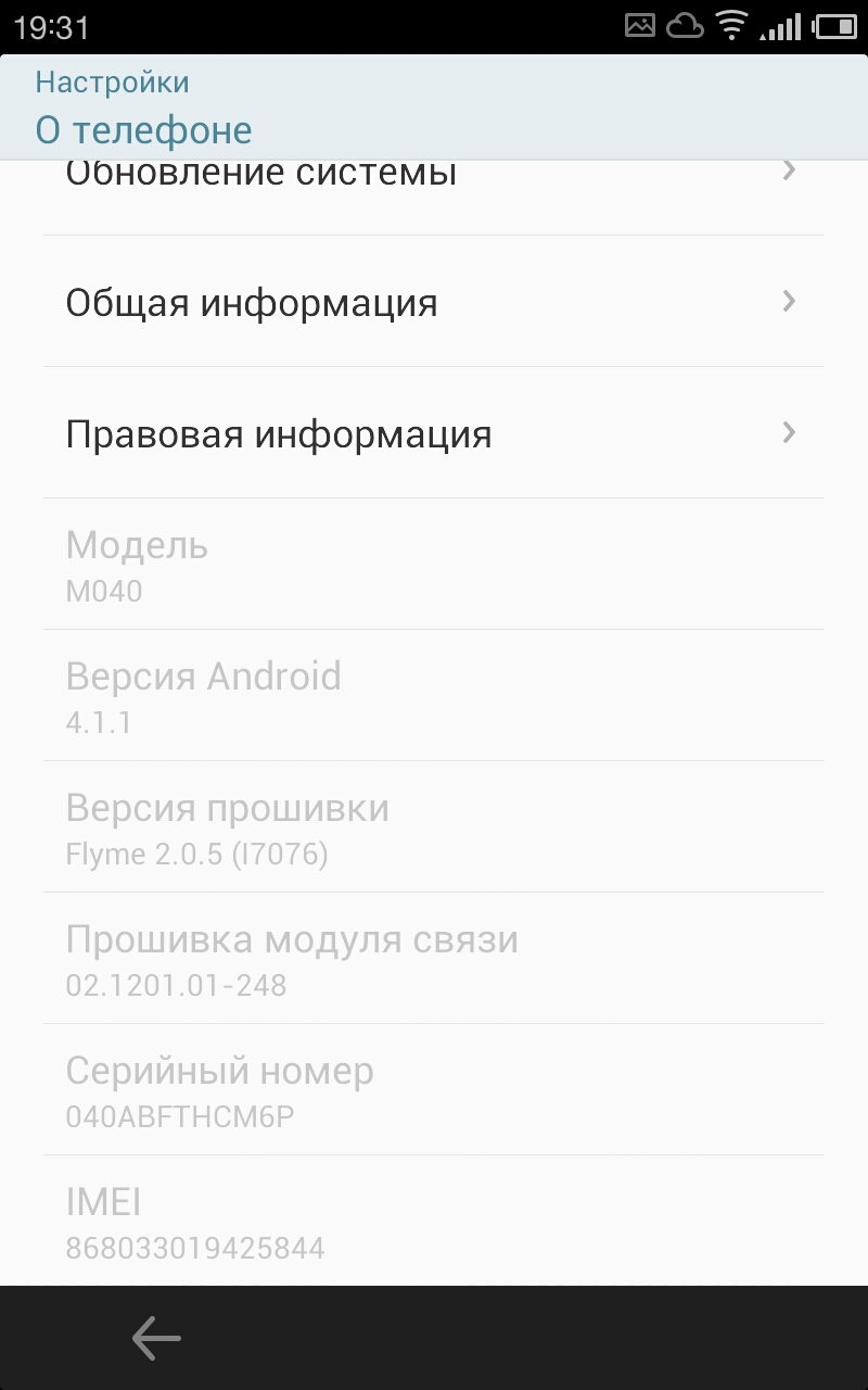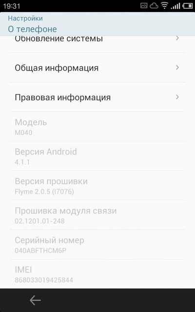 4.1 Jelly Bean, оболочка Flyme 2.0