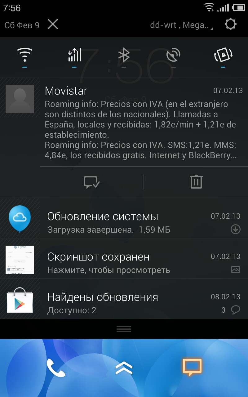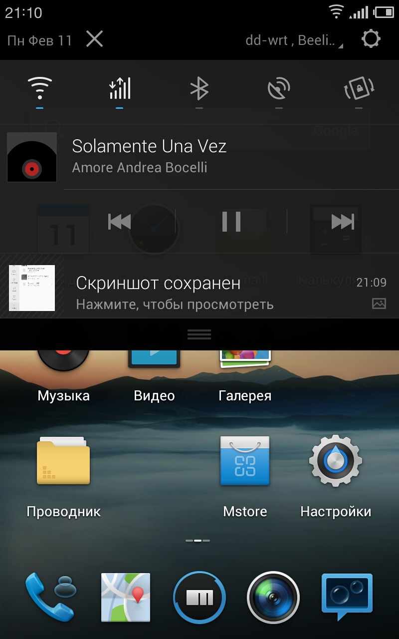 В панели переключателей области уведомлений содержатся следующие кнопки: Wi-Fi, мобильные данные, Bluetooth, GPS и поворот экрана. Негусто, у Samsung их 9. Впрочем, эти пять - действительно самые нужные.