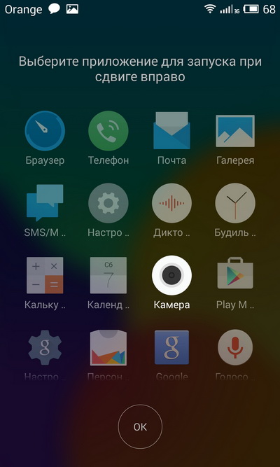При сдвиге окна блокировки влево можно выбрать программу, которая будет запускаться при сдвиге окна блокировки вправо.