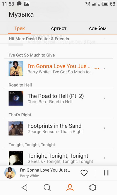 В аудиоприложении можно фильтровать записи по трекам, артистам и альбомам.