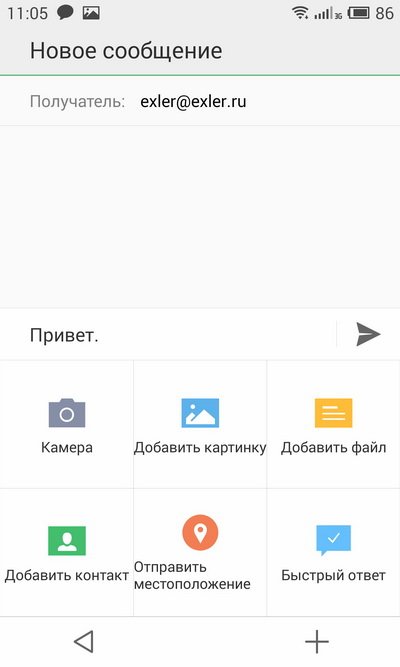 Поддерживаются блокировка спамеров, возможность прикладывания к сообщению различных видов медиаданных.