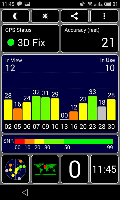 Яркость экрана регулируется в широких границах, запас по яркости - достаточный. На прямых солнечных лучах информация на дисплее хорошо различима. Пожалуй, это самый лучший дисплей для использования на солнце, что я видел. Впрочем, понятно, что такие оценки - сугубо индивидуальны.