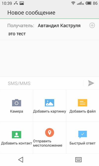 Поддерживаются блокировка спамеров, возможность прикладывания к сообщению различных видов медиаданных (это, разумеется, для MMS).