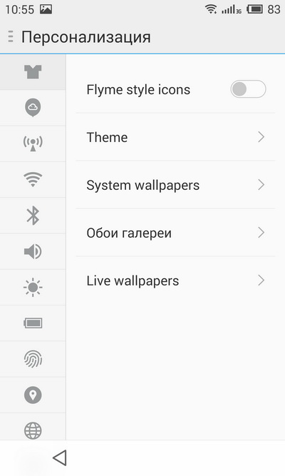Настройки в стиле Flyme. Есть довольно интересные возможности.