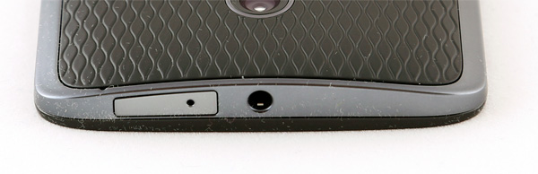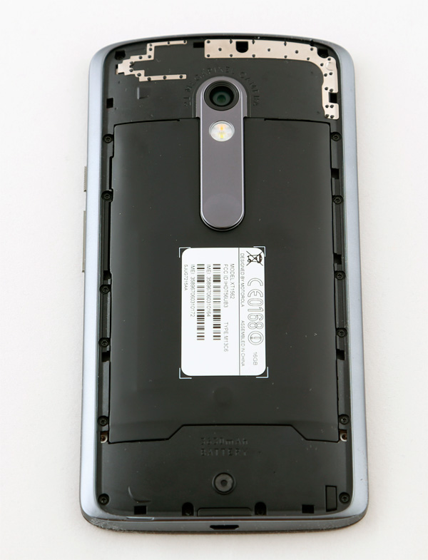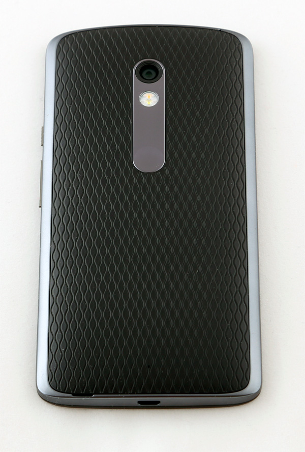 Также на задней поверхности есть металлическая вставка, которую можно при заказе декорировать в различные цвета, утопленный глазок камеры (так его сложнее заляпать), вспышка и логотип Motorola.