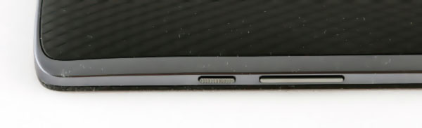 На правом торце - кнопка питания и качелька громкости. Они расположены рядом, однако кнопка питания на верхней кромке имеет специальную насечку - это очень правильное решение, так как при этом ее очень удобно нащупывать не глядя.  Замечу, что кнопка питания и качелька громкости имеют небольшой поперечный люфт, что несколько снижает впечатление.