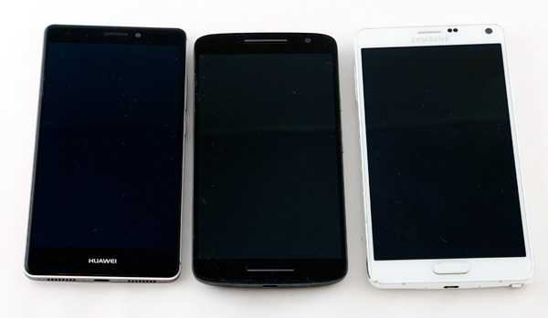 Вот наш герой в окружении Huawei Mate S (очень стильный и интересный смартфон, скоро будет обзор) и Samsung Galaxy Note 4.