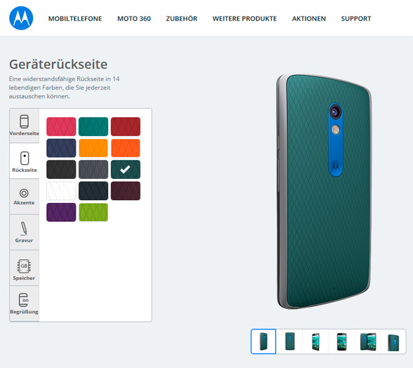 Вот, например, как выглядит выбор цвета задней крышки в немецком MotoMaker.