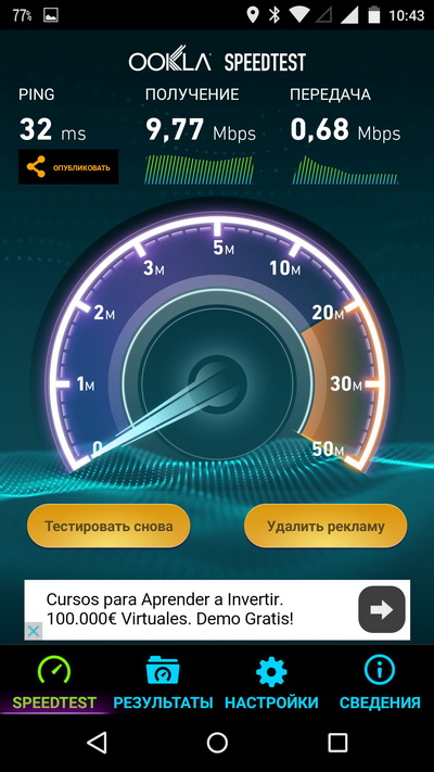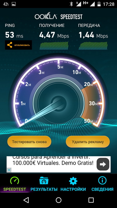 Для данных условий тестирования (тут связь не особенно хорошая) - скорости фактически максимальные. Тестировал аппарат на хорошем 4G (в Барселоне) - временами показывал аж под 50 мегабит.