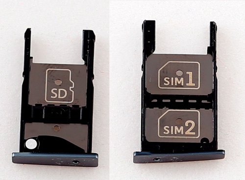 Тут одна вставка на все три карты: на одной стороне - microSD, на другой - две nanoSIM. На фото - две стороны одной вставки.
