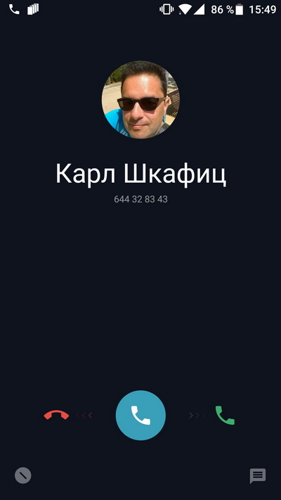 Входящий звонок (картинка выводится в небольшом кружочке).