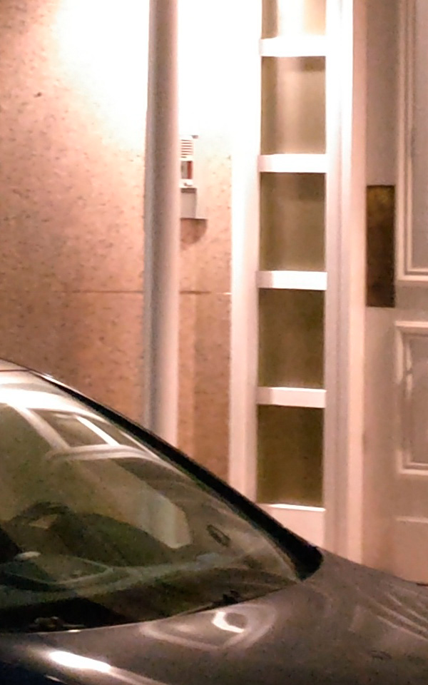 Глазок камеры на пару миллиметров возвышается над задней крышкой, верхняя и нижняя вставки - пластиковые, покрашены под цвет крышки. Второй микрофон для шумоподавления находится над глазком камеры.