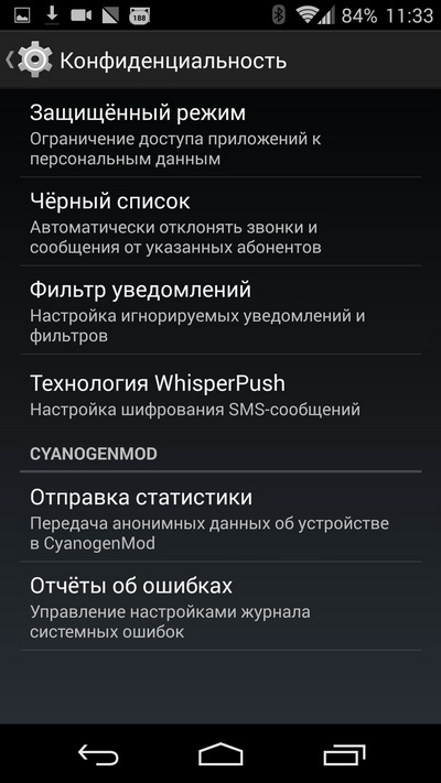 Одна из фишек этого телефона - здесь установлена модифицированная прошивка CyanogenMod 11S с оболочкой Trebuchet 1.0 на Android 4.4.4. Это одна из самых известных и популярных прошивок, создаваемая независимыми разработчиками. Она характеризуется очень гибкими возможностями настройки.