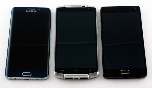 Вот этот смартфон рядом с Samsung Galaxy S6 edge+ и Lenovo Vibe P1. Замечу, что даже на их фоне K10000 особо не проигрывает: он выглядит главным деревенским силачом, зашедшим на вечеринку столичных щеголей.