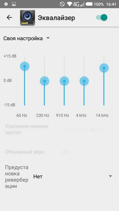 Присутствует эквалайзер, однако его лучше не включать: звук в наушниках явно портит, а не улучшает.