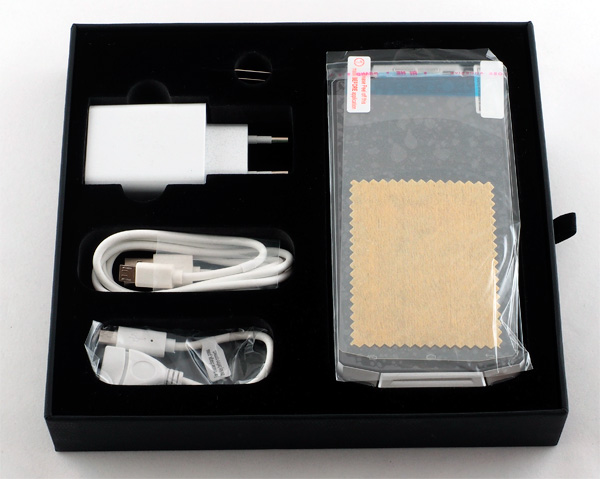 Комплект поставки: смартфон, защитное стекло, адаптер питания 5V-7V-9V/2A, кабель USB-microUSB, кабель microUSB-USB с кнопкой включения заряда подключенного устройства, прозрачный чехол, брошюрки, скрепка для слота под сим-карты.