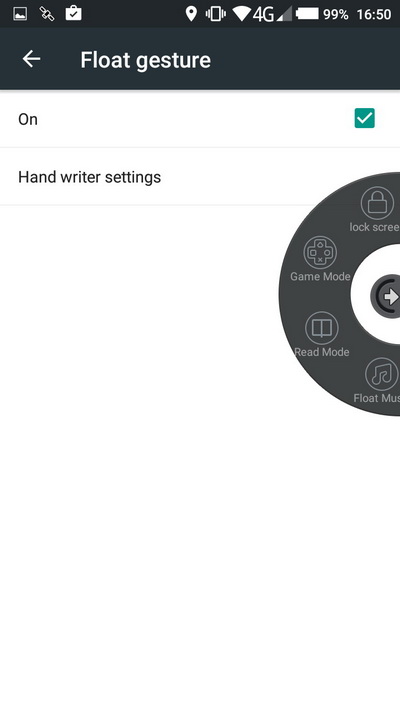 Включение блуждающей кнопки (будет присутствовать на всех экранах), которая переключает различные настройки.