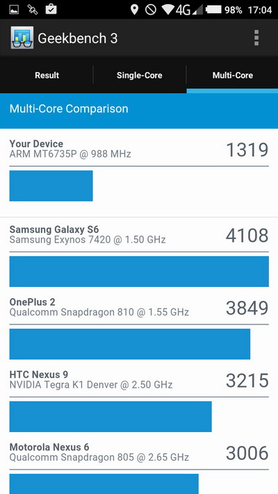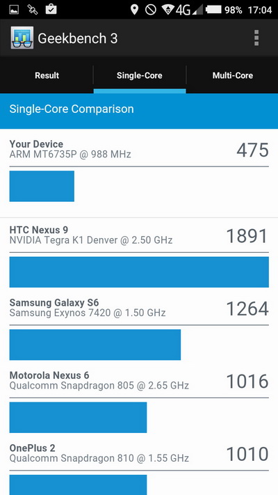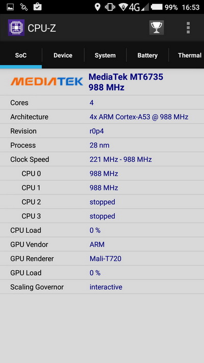 Процессор: MediaTek MT6735P, 1 ГГц, 4-ядерный