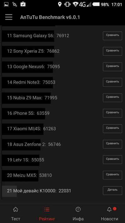 Графический процессор здесь фактически начального уровня, однако даже тяжелые 3D-игры шли терпимо. Asphalt8 выставил высокое качество.