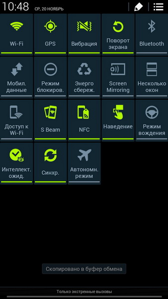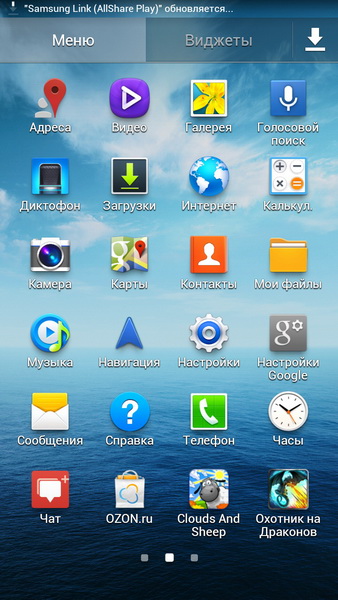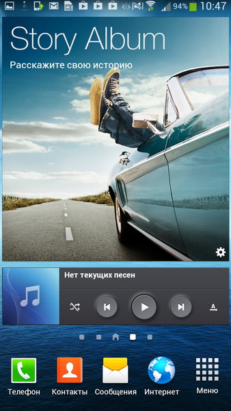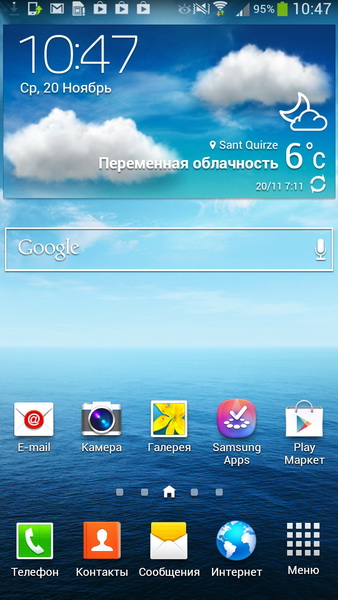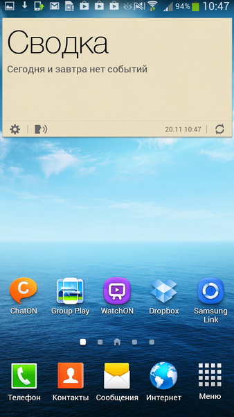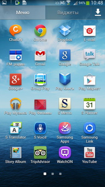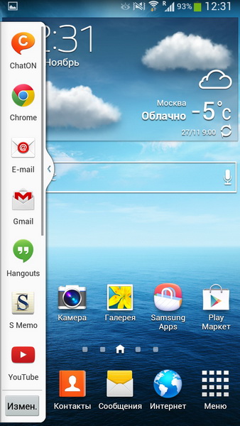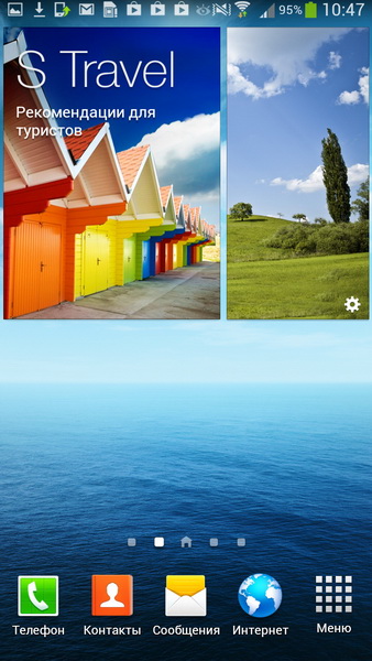 Здесь установлены Android 4.2.2 и фирменная самсунговская оболочка TouchWiz, в которой также значительно переработаны многие системные приложения. Я эту оболочку и приложения подробно рассматривал в обзоре Samsung Galaxy S 4, так что повторяться смысла не вижу, поэтому пробежимся, так сказать, крупным помолом и рассмотрим только специфические для данного аппарата особенности.