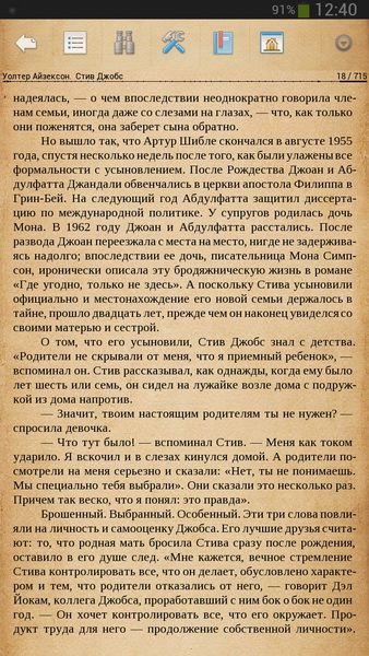 Ну и меня тут больше всего интересовало, как на таком экране выглядят приложения с мелким текстом - браузер и ридер.