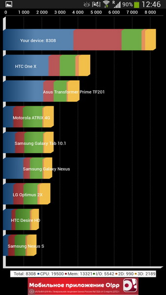 По Quadrant Standard - 8308. У Galaxy S 4 - 12080.