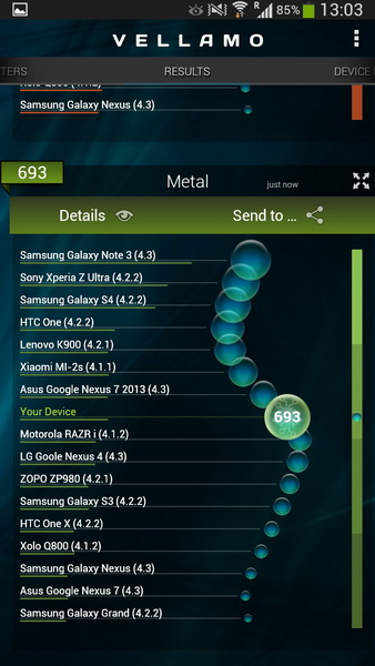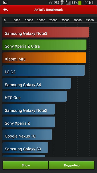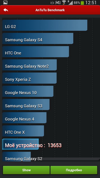 Antutu засунул устройство в самый низ - 13653. У Galaxy S 4 - 26755.