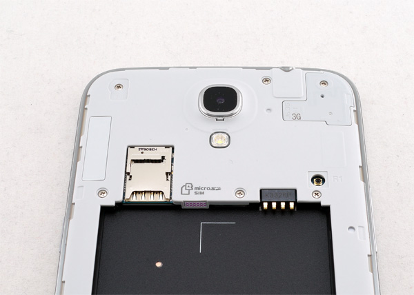 Под крышкой - съемный аккумулятор (это полезно, можно с собой носить запасной заряженный), слот для сим-карты и microSD. Карту памяти можно менять без вытаскивания аккумулятора. Это не очень просто, но можно.