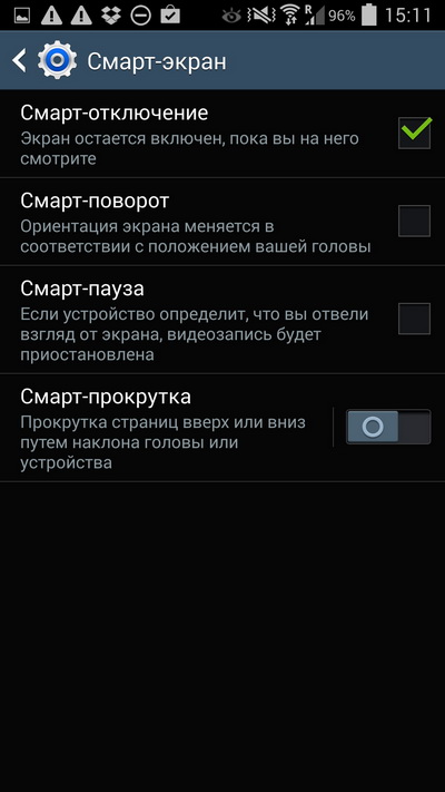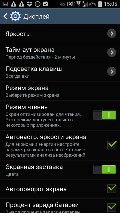 При этом у Galaxy Note 3 отличное качество изображения, очень насыщенные, но вместе с тем естественные цвета, прекрасное качество текста, очень хорошие углы обзора (при отклонении по вертикали или горизонтали лишь незначительно уменьшается яркость). Ну и, кстати, даже автоподстройка яркости тут работает более или менее пристойно, что редко бывает на андроидных смартфонах. (Хотя, надо сказать, при искусственном освещении эта автоподстройка то слишком затеняет экран, то, наоборот, делает его слишком ярким, так что я автоподстройку все равно выключаю.)