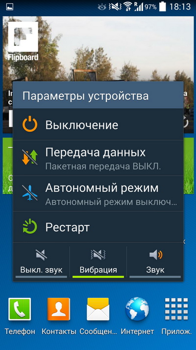 Длинное нажатие кнопки включения вызывает вот такое меню.