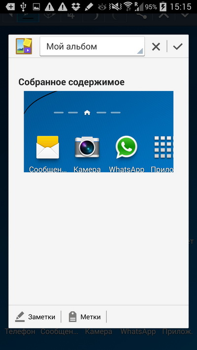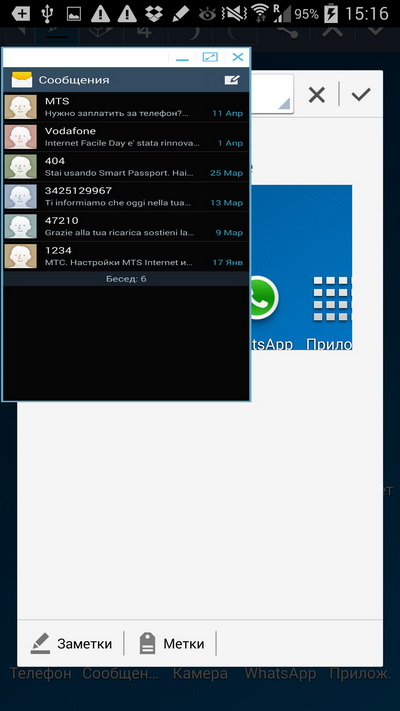 Ну и последний пункт - открыть в окне. Это один из вариантов реализации многозадачности. Вы можете нарисовать произвольную область на экране, и в этой области вам предложат открыть калькулятор, часы, телефон, браузер, сообщения, YouTube, галерею и так далее и тому подобное. Причем окно с этим приложением будет сохранено на десктопе в качестве пиктограммы, и вы его сможете вызвать в дальнейшем.