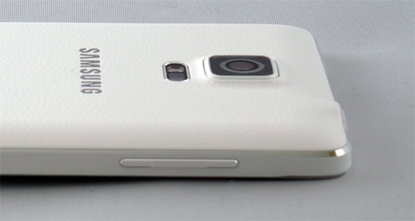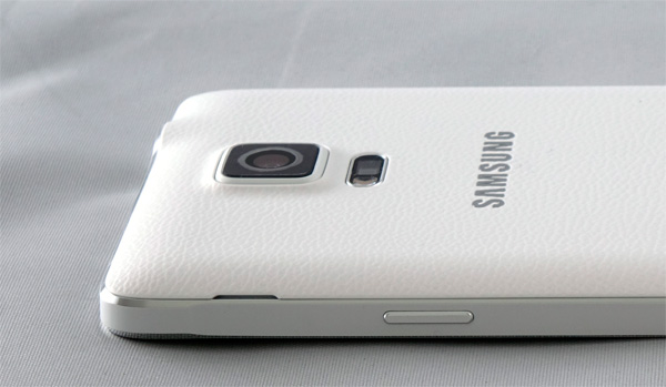 Note 3 мог похвастаться рифленым пластиковым ободком "под металл" на торцевых поверхностях, здесь ободок металлический, и он покрашен в цвет смартфона, а у верхних-нижних граней срезаны фаски, что выглядит вполне интересно.