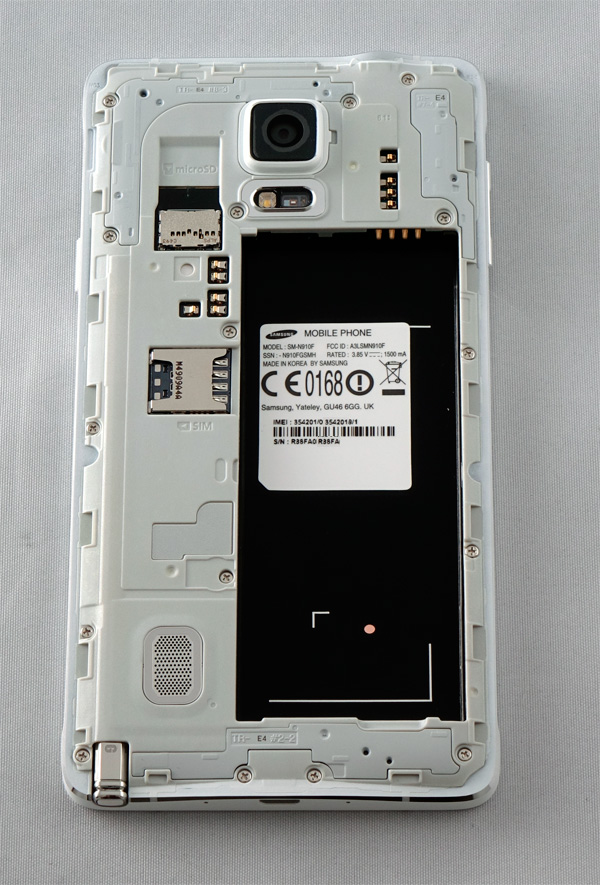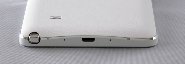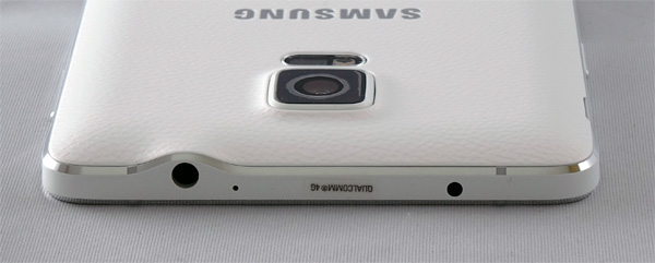 Динамик по сравнению с третьей моделью перекочевал на заднюю крышку (как у Galaxy S5). Кажется, что при таком расположении динамик будет глушиться поверхностью стола, когда смартфон на нем лежит, ан нет - не глушится: там перемычка надсеткой динамика имеет небольшое утолщение,поэтому динамик в любом случае не будетплотно прижиматься к поверхности.