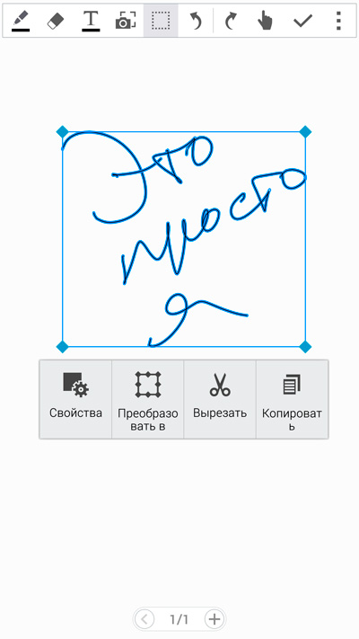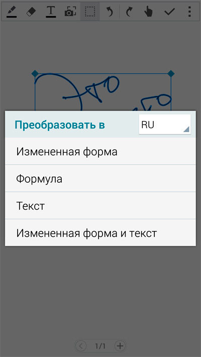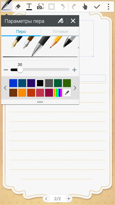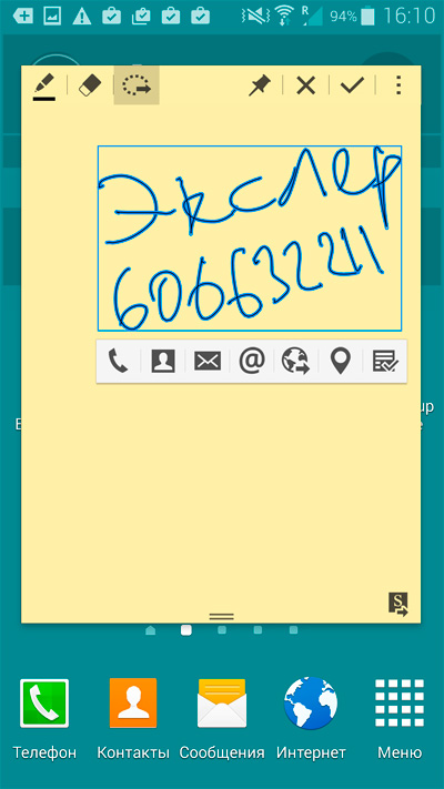 Также для работы с пером предназначено очень продвинутое приложение S Note (его можно вызвать как из записки, так и пиктограммой), в котором можно создавать записки и распознавать там фигуры, формулы и текст.